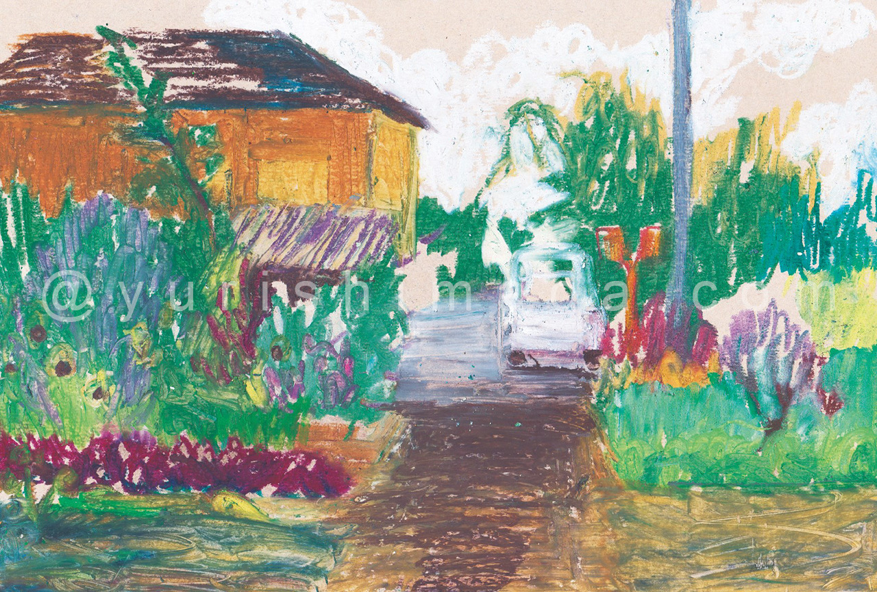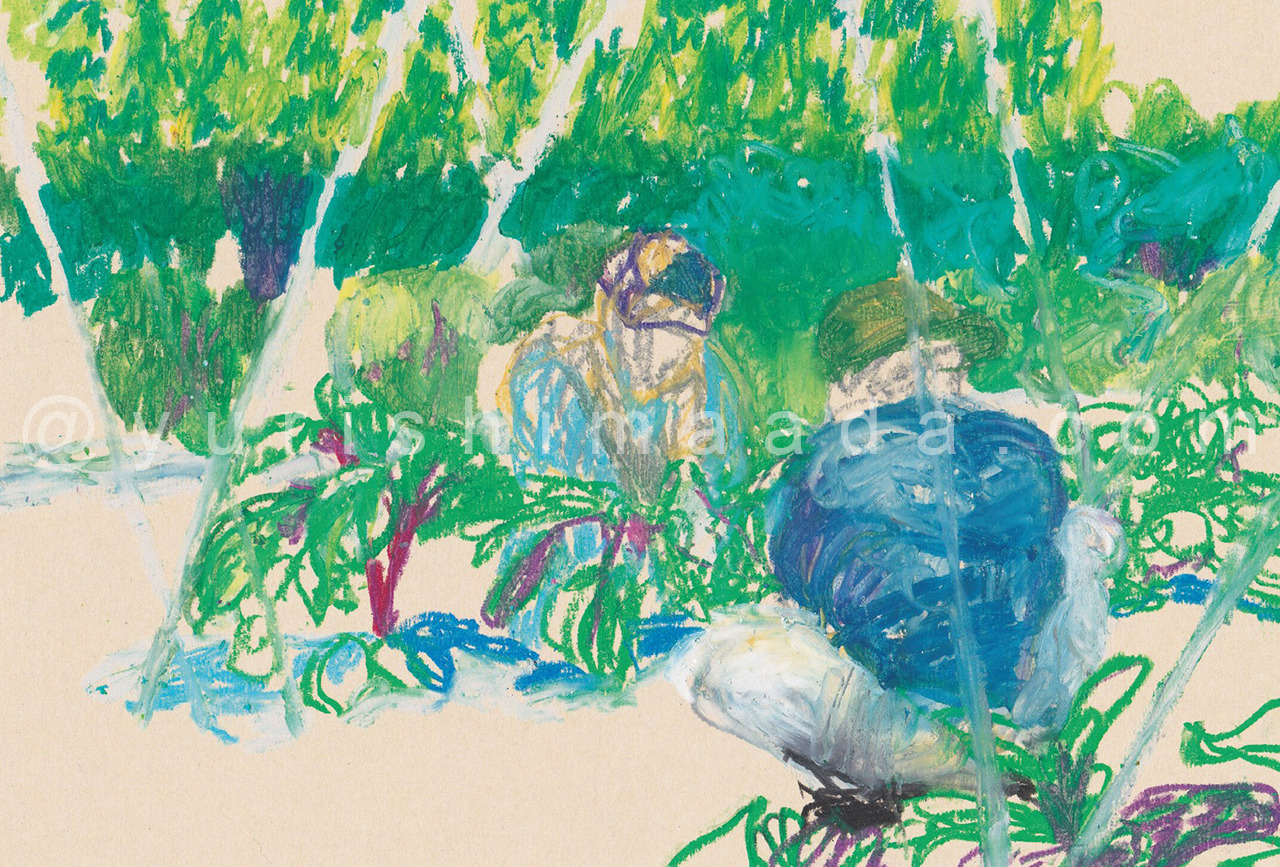 国分寺の農家を”農業デザイナー”と訪ねて絵を描く「はたけの歳時記」プロジェクトを始めました。ボール紙にオイルパステルで描いています。裏には記憶に残ったエピソードを綴っています。