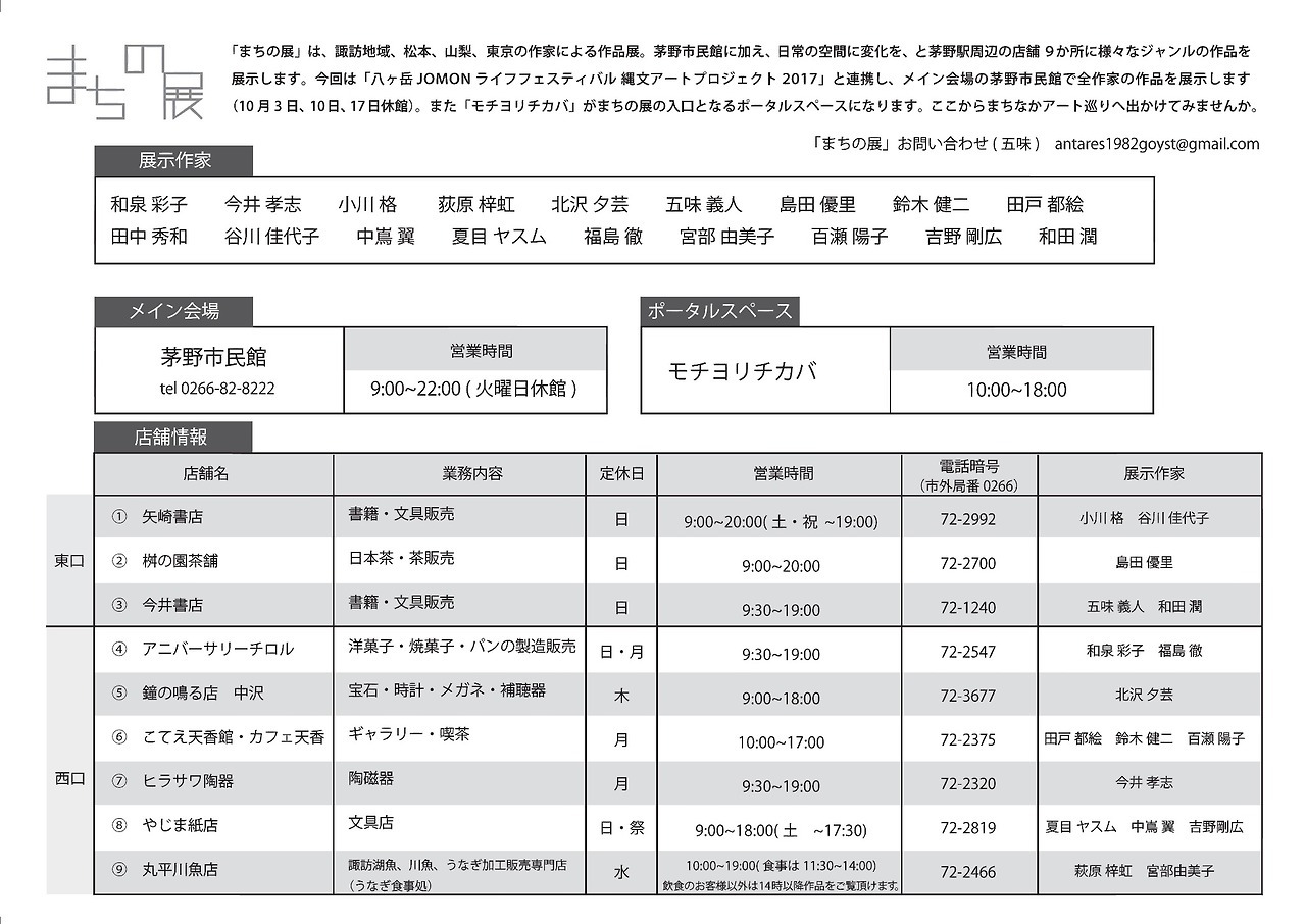 「まちの展」は長野、山梨、東京の作家による作品展です。