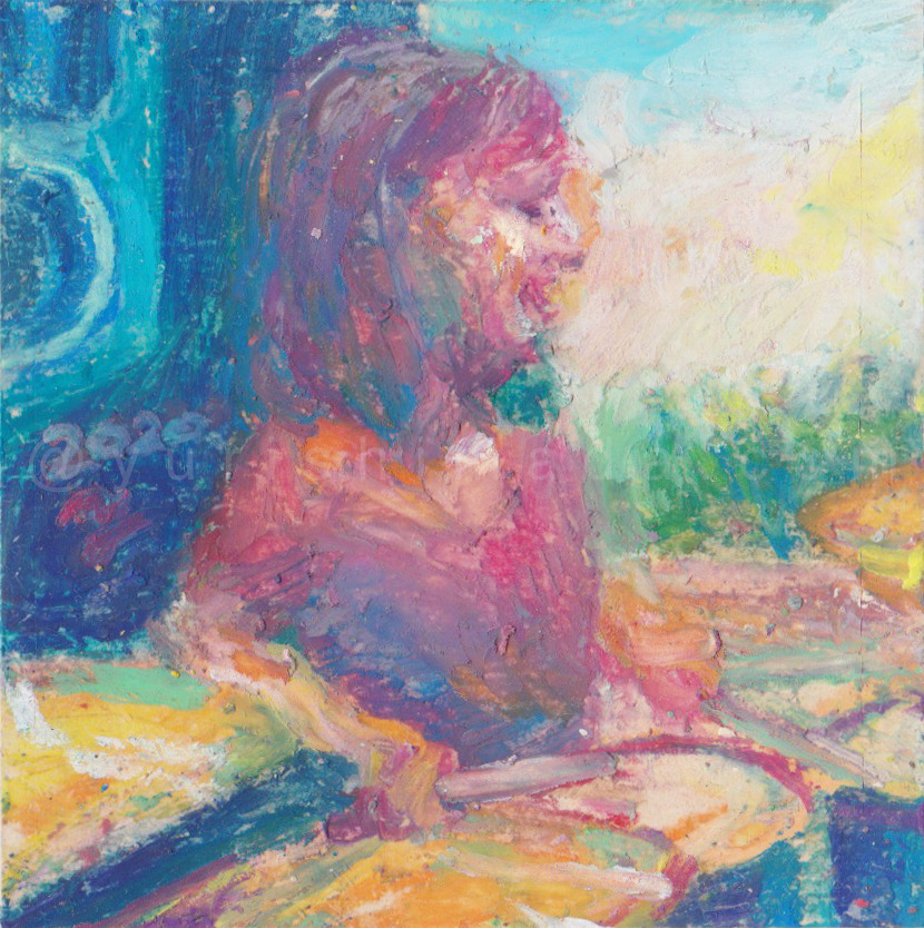 ちいさな厚紙に、オイルパステルで制作しているシリーズです。